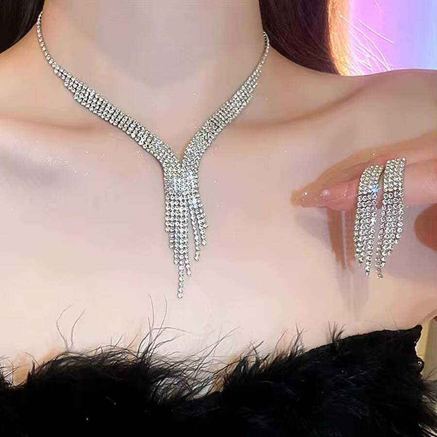 Water drop jewellery set ,crystal and rhinestone necklaces and earrings