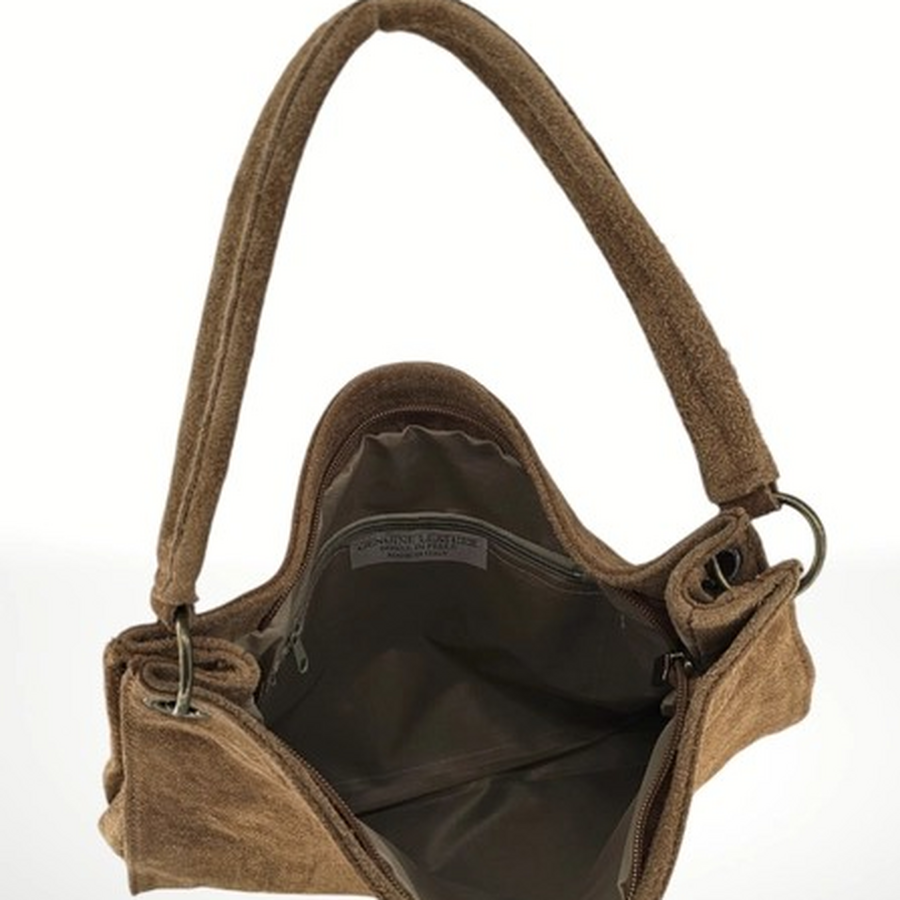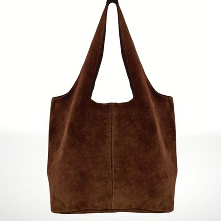 This is a suede leather bag, designed to combine elegance and functionality in everyday use. Its large size and comfortable handles make it a versatile and practical accessory, ideal for carrying all your essentials.
